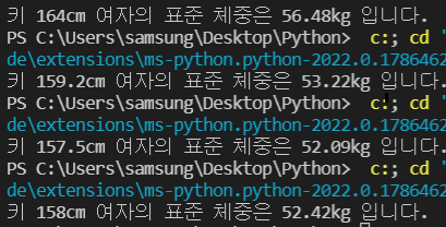 # 조건 1 : 표준 체중은 별도의 함수 내에서 계산